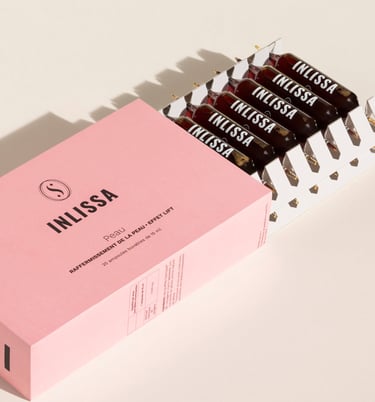 Conditionnés en ampoules de verre recyclables, sans conservateurs ni additifs controversés, les produits INLISSA agissent de l’intérieur pour améliorer l’éclat de la peau, freiner le vieillissement, renforcer les cheveux ou soutenir l’immunité et la vitalité.